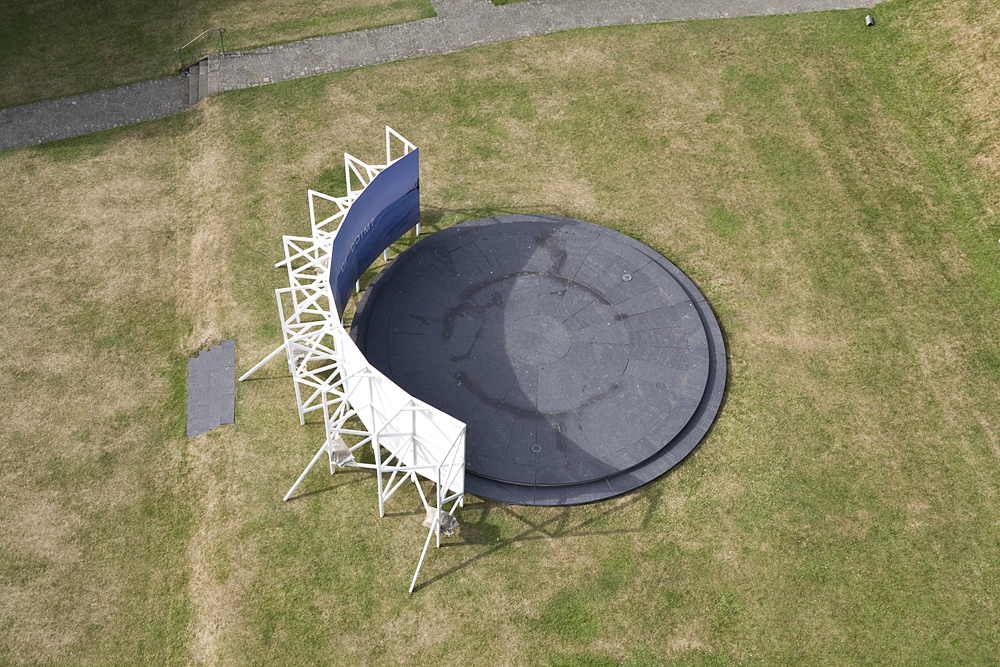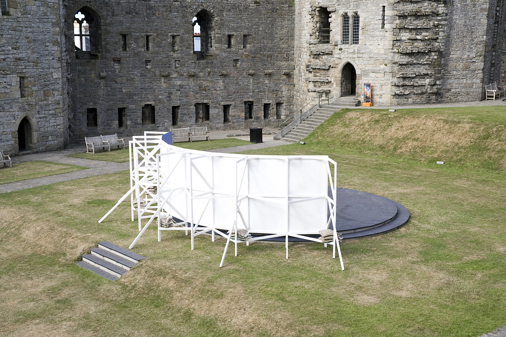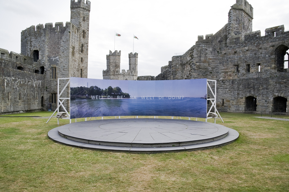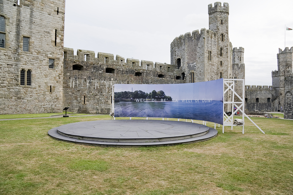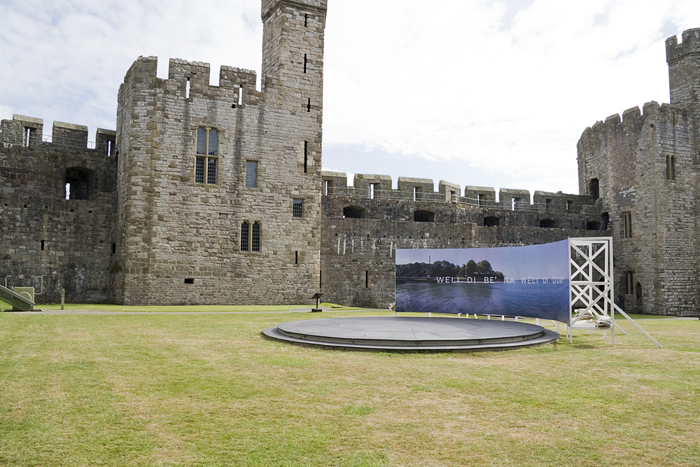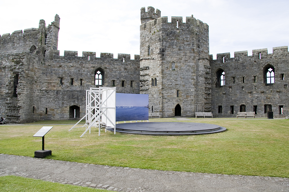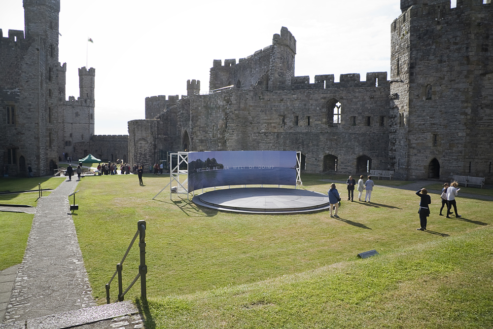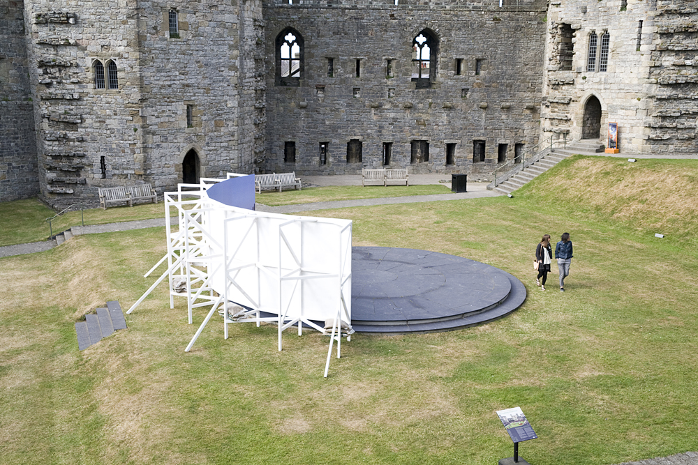 The work invites the viewer to consider another perspective on the history of Caernarfon Castle and the slate dais installed for the